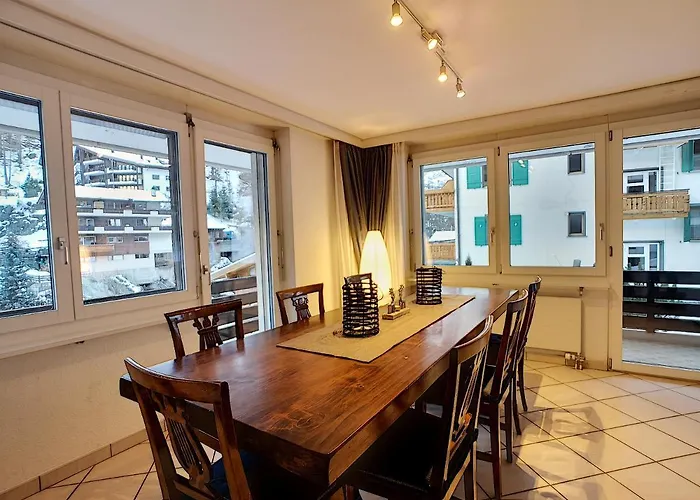 Lägenheten ligger inom 10 minuters promenad från Bergsklättrarnas kyrkogård. Zermatts centrum är beläget omkring 10 minuters bilresa bort. Olika matställen, inklusive Hotel Alpenrose och Restaurant Weisshorn, kan nås inom 200 meter.